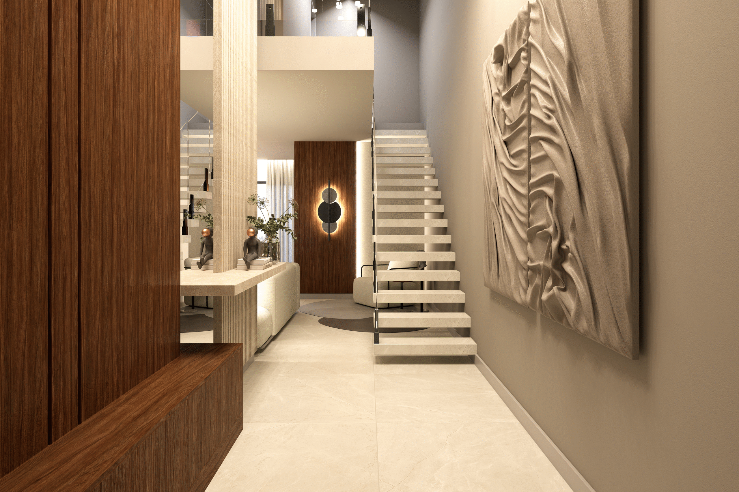 Abertura de 7,39 metros, garagem para 4 carros, sendo 2 cobertas e 2 descobertas. Já o pavimento superior possui 3 suítes. Todos os ambientes bem espaçosos e ventilados.