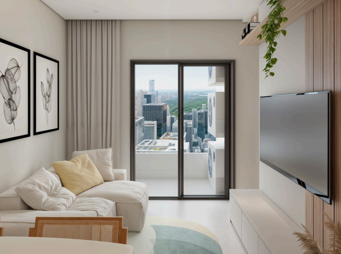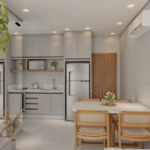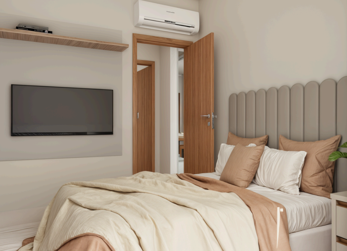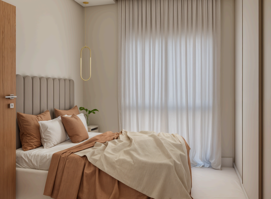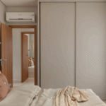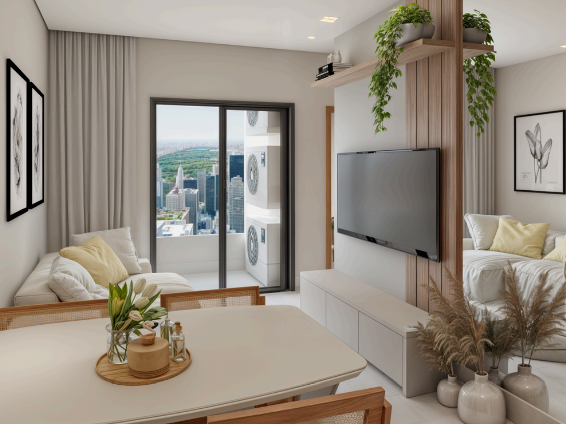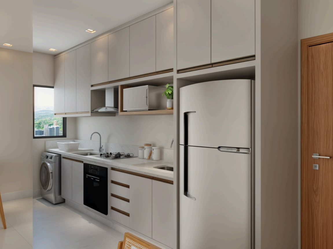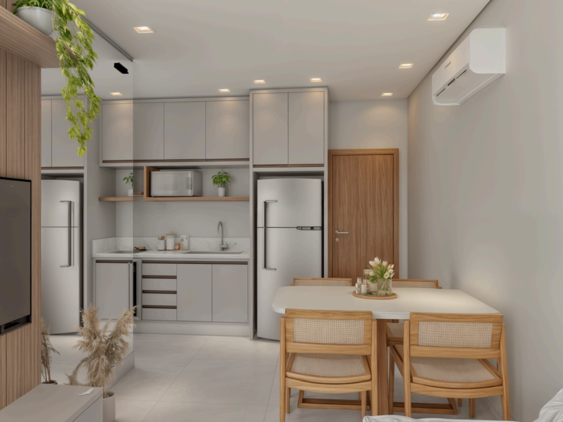Os apartamentos possuem 48m², 2 dormitórios, sala e cozinha integradas, sacada com churrasqueira, rebaixo em gesso, massa corrida e infraestrutura para ar-condicionado. Cada unidade inclui 1 vaga de garagem e condições de entrada facilitada.