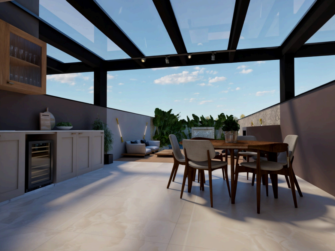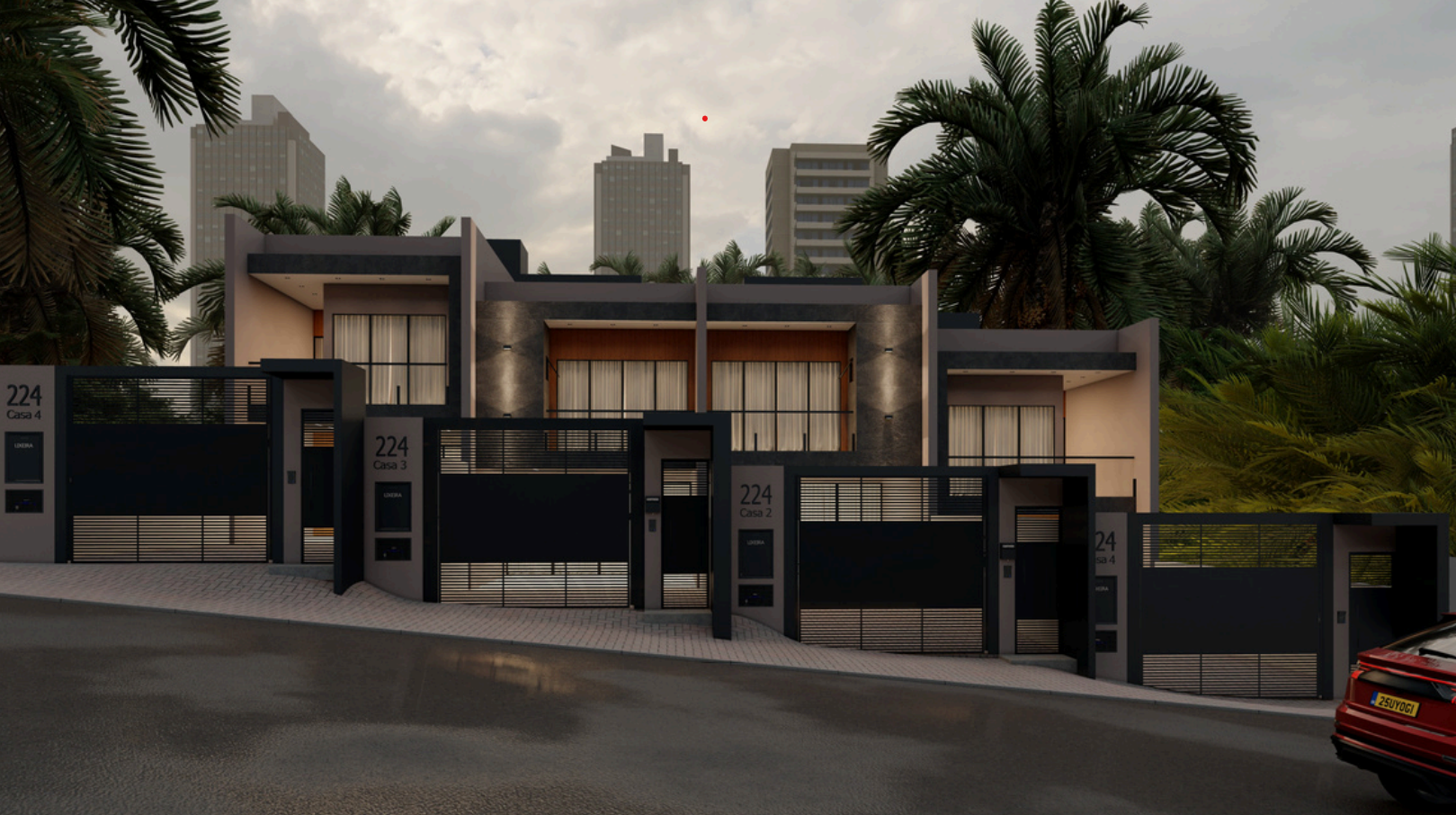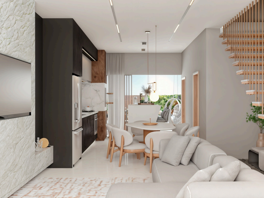 Unidade 1; Empreendimento localizado na região Norte de Joinville, no bairro Bom Retiro, próximo a shopping, universidade, mercados, farmácias e vias de acesso rápido. A apenas 235 metros da Rua Tenente Antônio João, oferece praticidade e excelente mobilidade urbana. As unidades contam com 143m², living amplo com grandes aberturas, área gourmet integrada e 12 metros de área livre nos fundos. Dispõem de garagem para 4 carros e, no pavimento superior, uma suíte mais dois dormitórios, todos com ótimo espaço e ventilação.